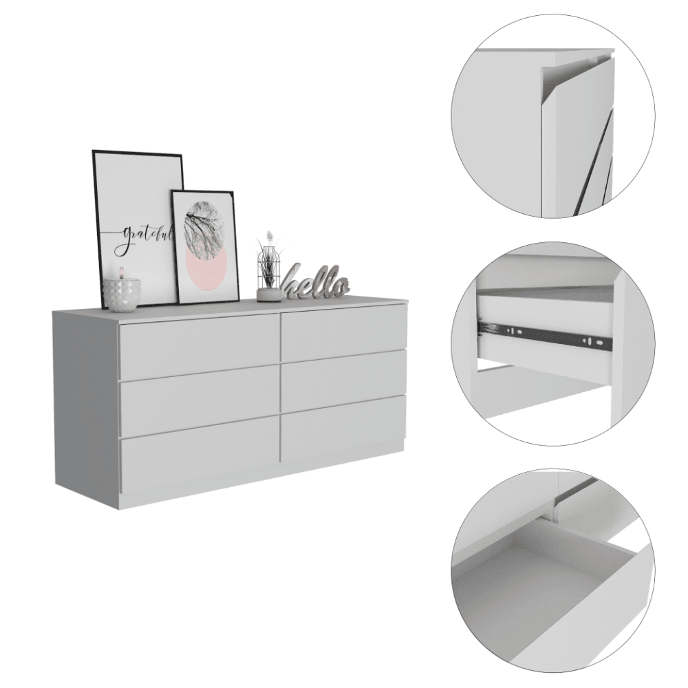 Asteria 6 Drawer Double Dresser, Metal Handles -White Asteria 6 Drawer Double Dresser, Metal Handles -White Asteria 6 Drawer Double Dresser, Metal Handles -White