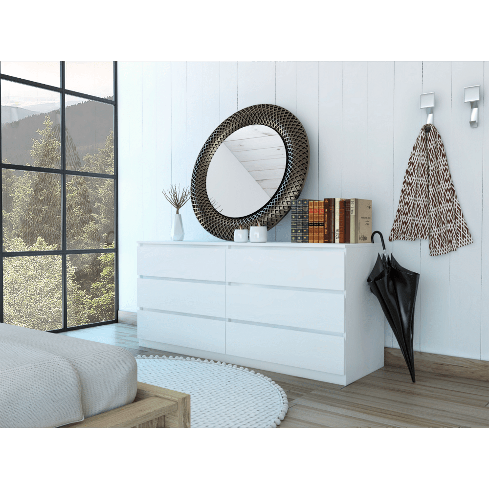 Asteria 6 Drawer Double Dresser, Metal Handles -White