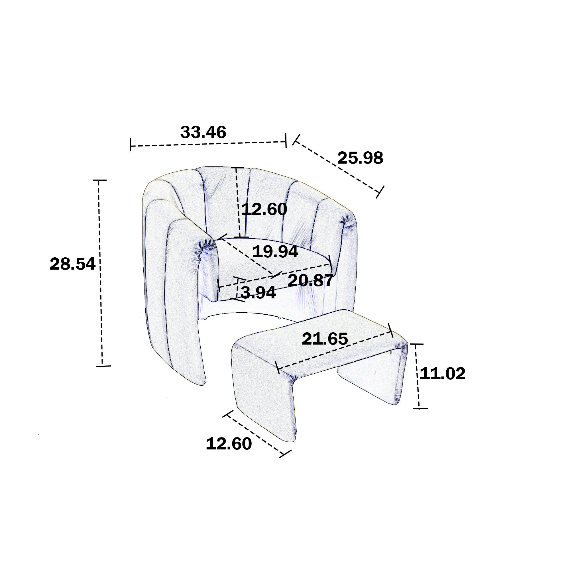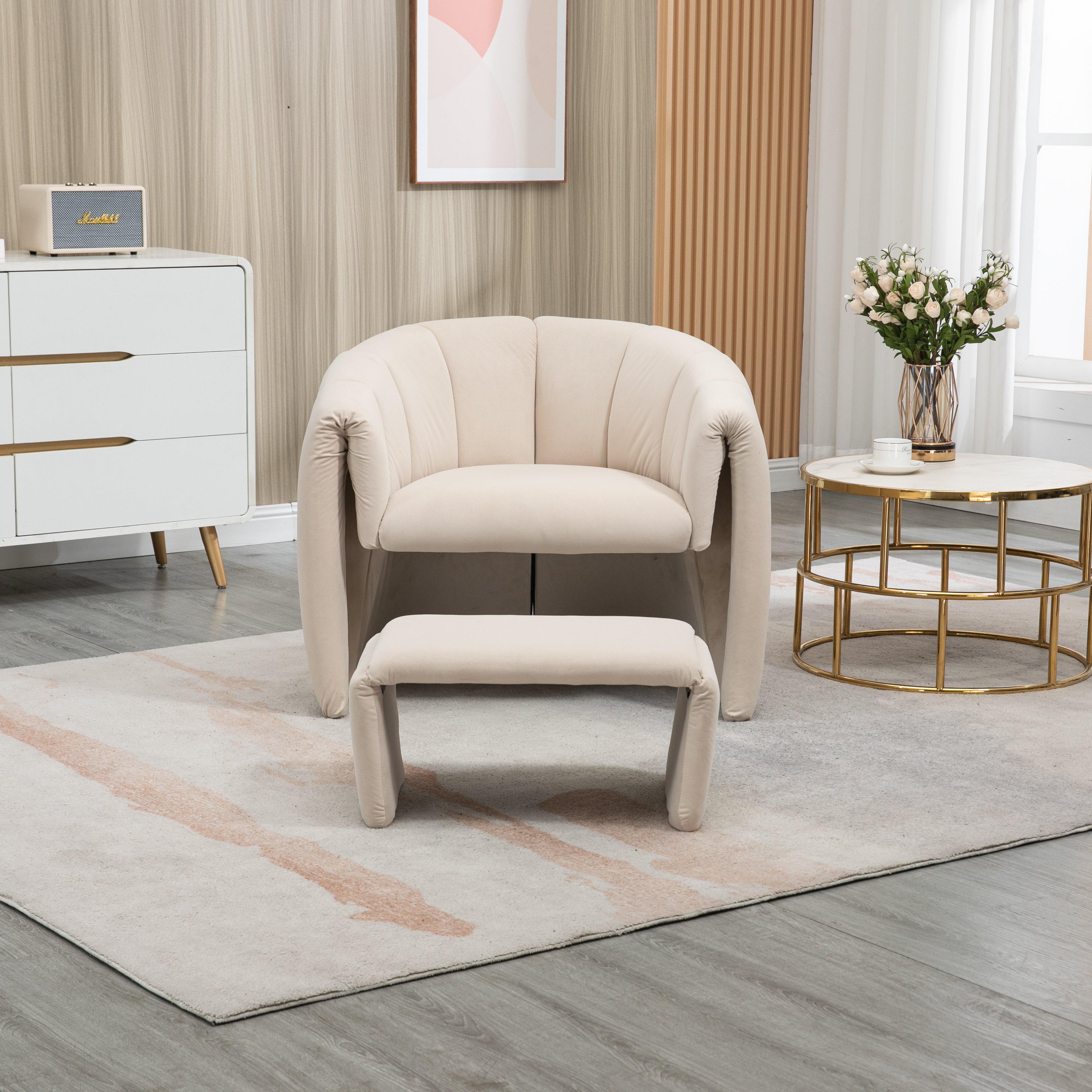 Comfortable CushionsOur chairs are soft and equipped with comfortable high-density foam cushions that provide the ultimate in comfort and support.The best softness and extra cushions give the chair a relaxing feel.The chair is made of velvet and foam, ergonomic and comfortable sitting position.This living room chair has a matching ottoman, which is ideal for putting your feet up and relaxing after a hard day.Reading, working on your laptop, watching TV, or napping.