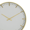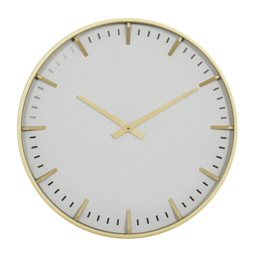 Analog wall clock comes with a gold finish on the hour and minute hands, minute markers, and the outer border frame