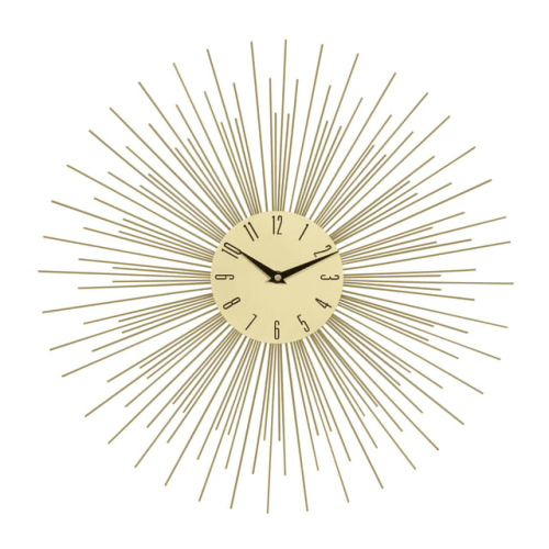 Round shaped clock with metal spike lines to mimic sunshine rays