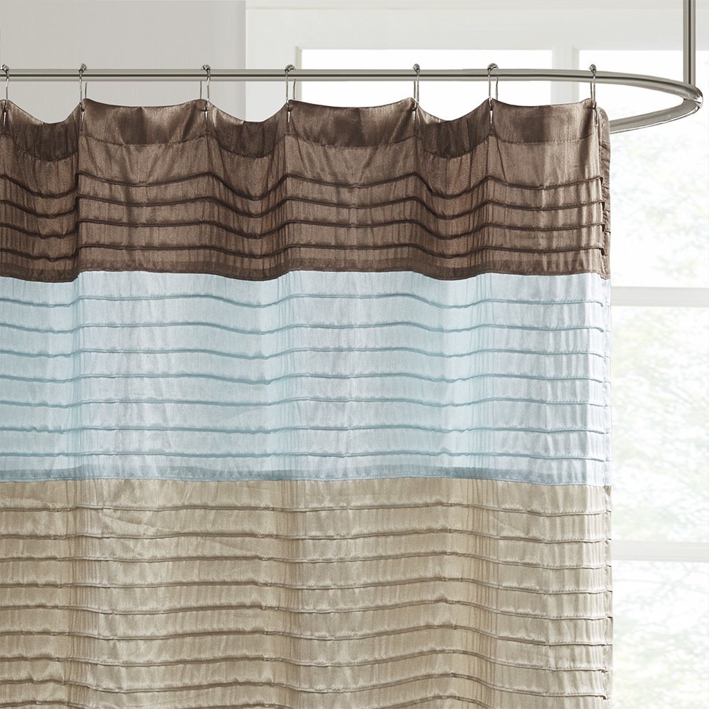 Easily transition your bathroom with this simple, yet beautifully classic shower curtain. The faux silk dupioni fabric has a natural light sheen and drapes beautifully, while also machine washable for easy care. This lightweight shower curtain features pieced and pintucking details creating a rich texture and a unique color block design, sure to freshen up any space. Pattern layout may vary due to variation of sizes. A water repellant liner is not included, and highly recommended. Complete the collection and look with coordinate bath decor, bedding, and window decor - available and sold separately.