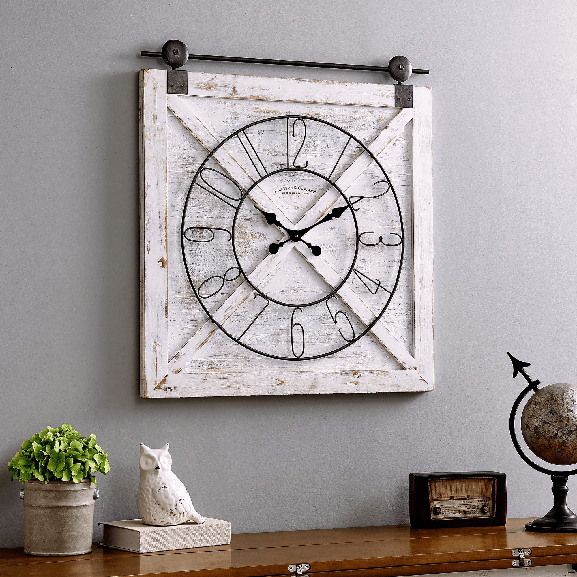 FirsTime & Co. White Farmstead Barn Door Wall Clock, Farmhouse, Analog, 27 x 2 x 29 in