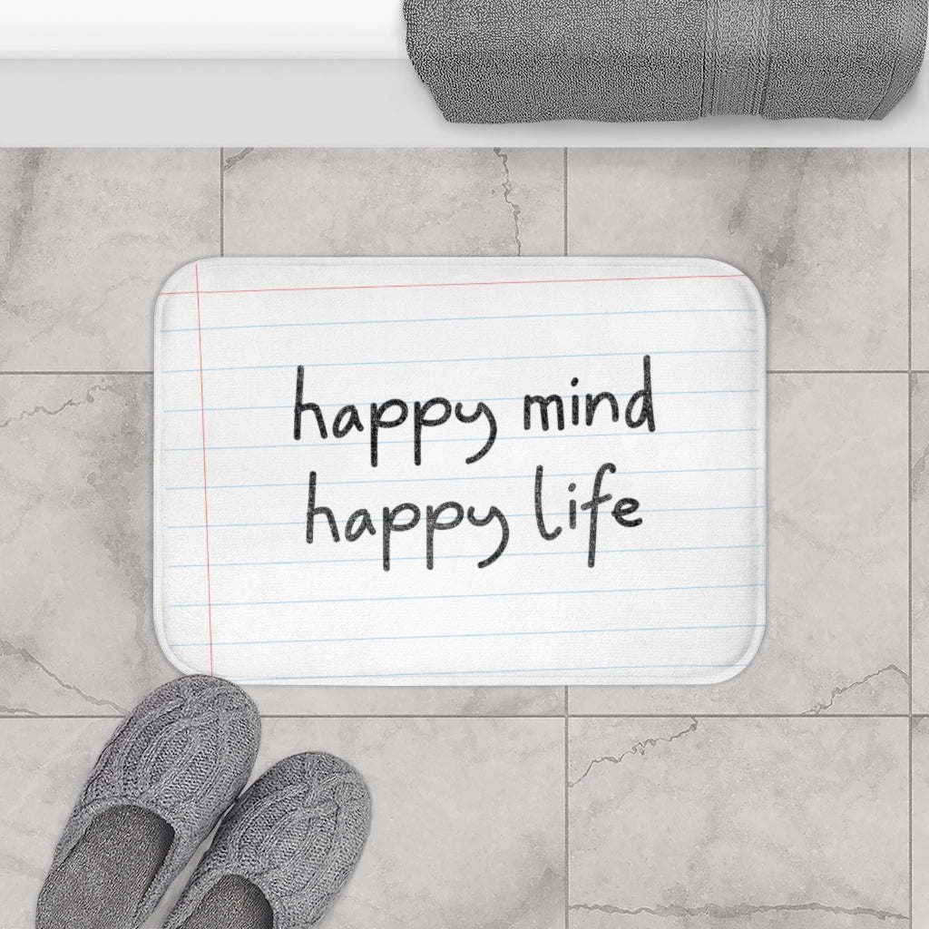 Happy Mind, Happy Life Pencil Font Bath Mat