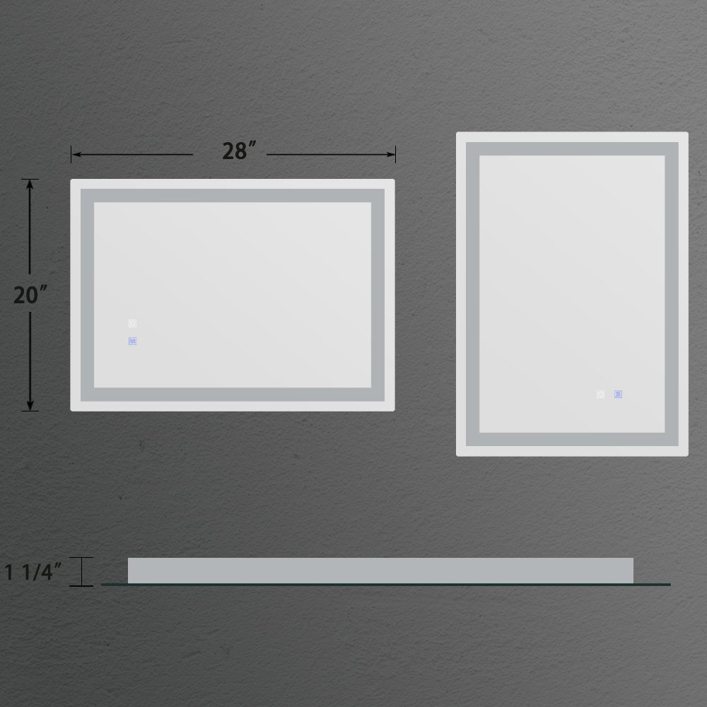 LED Bathroom Vanity Mirror, 20x28 inch, Anti Fog, Dimmable,Color Temper 5000K,Backlit+Front Light