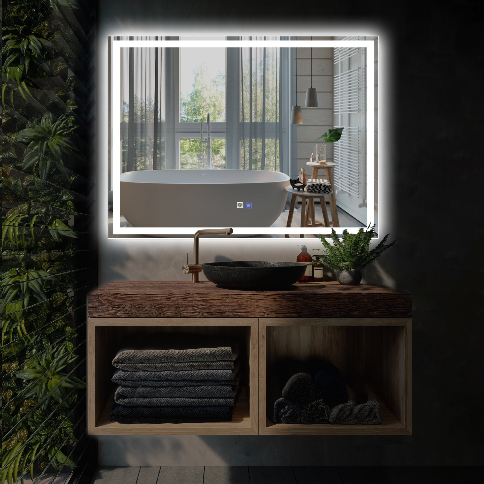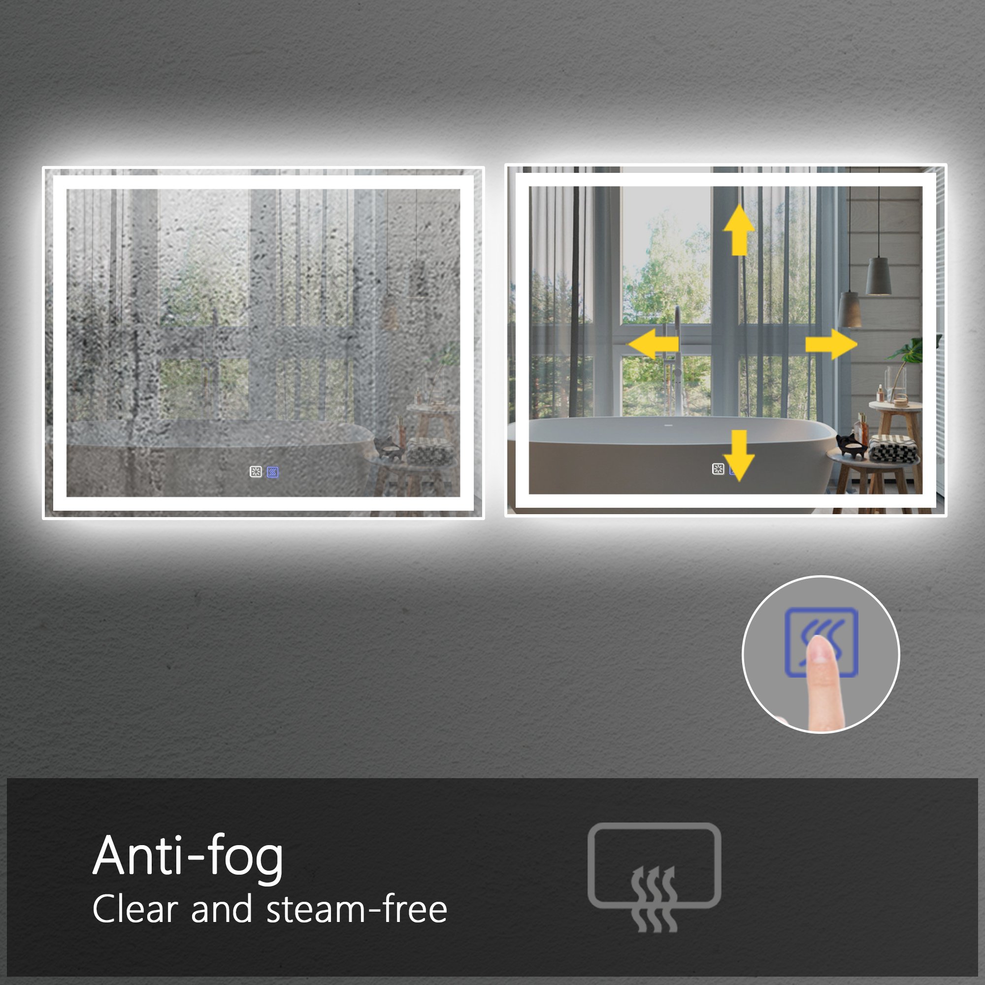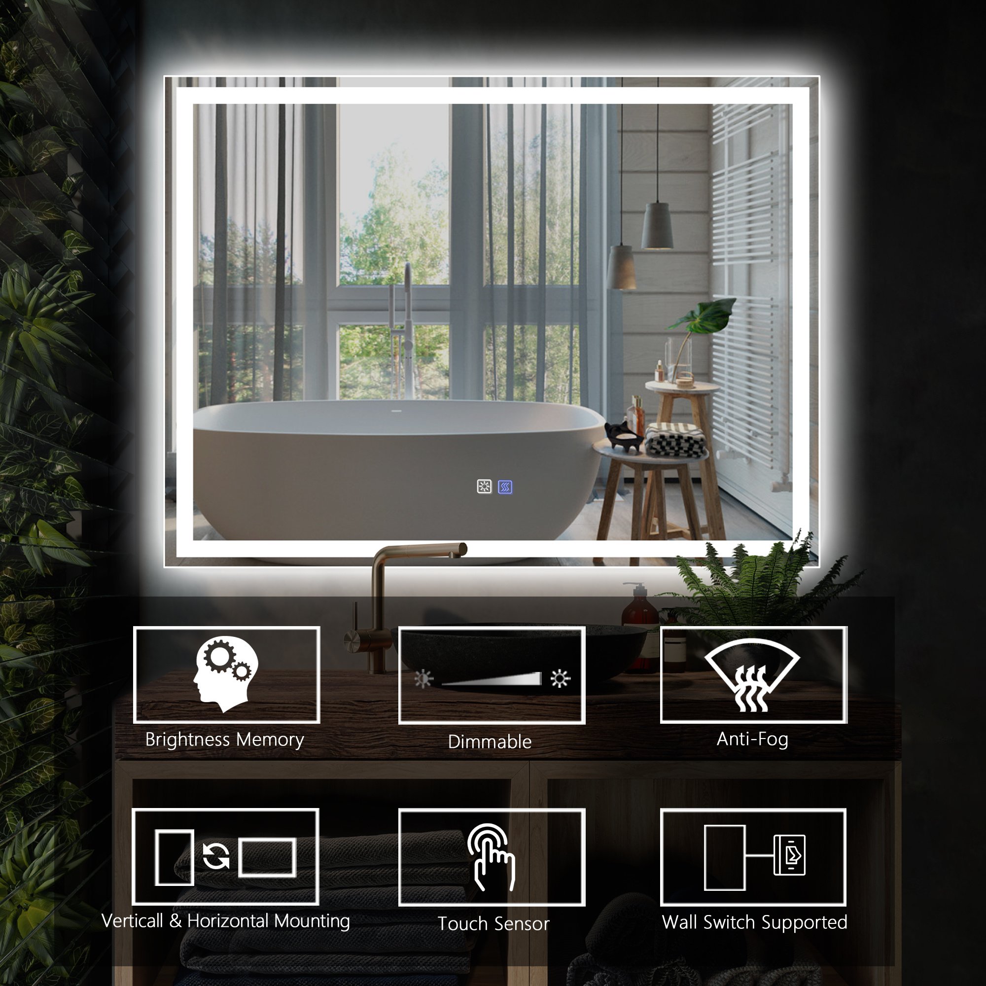 LED Bathroom Vanity Mirror, 48x36inch, Anti Fog, Dimmable,Color Temper 5000K,Backlit+Front Light