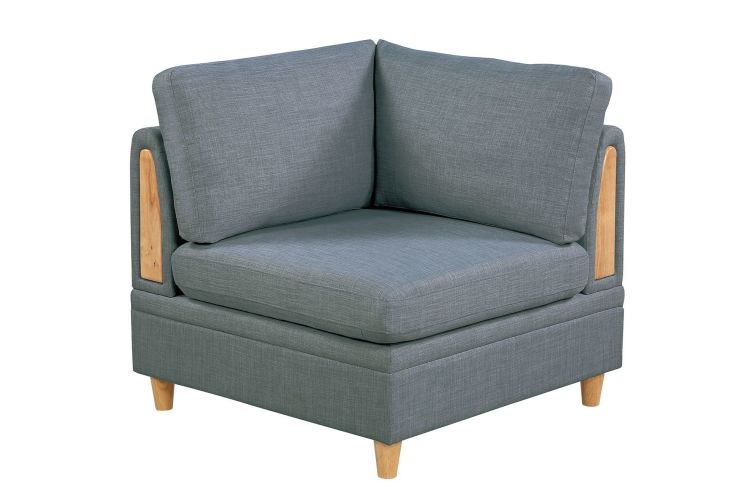 Living Room Furniture Corner Wedge Steel Color Dorris Fabric 1pc Cushion Wedge Sofa Wooden Legs