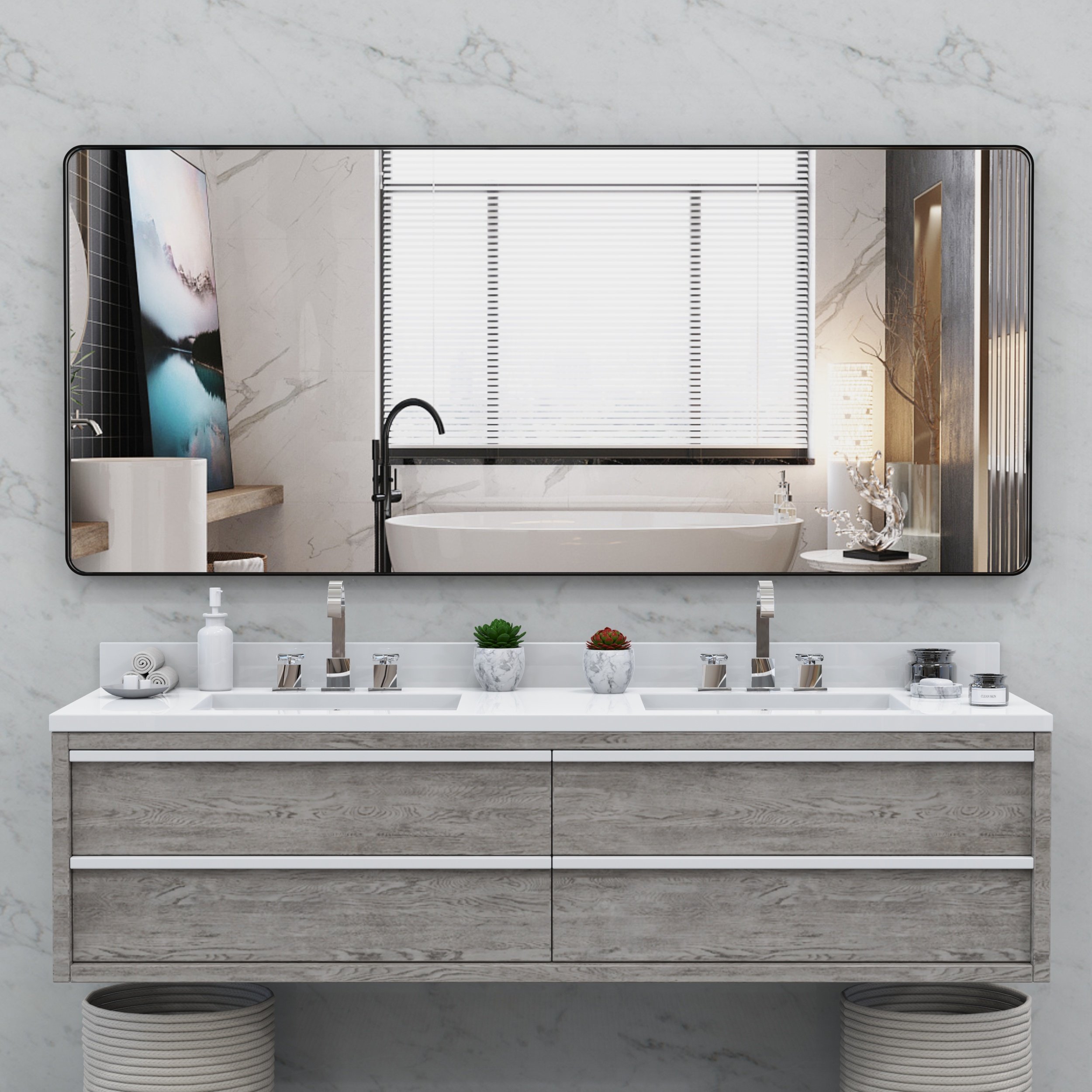 Expansive Beauty & Unrivaled Vision: Immerse yourself in the grandeur of our oversized 72x32 inch bath mirror & full length mirror. Its generous proportions offer a wide and clear reflection, ensuring you admire your entire ensemble at once.