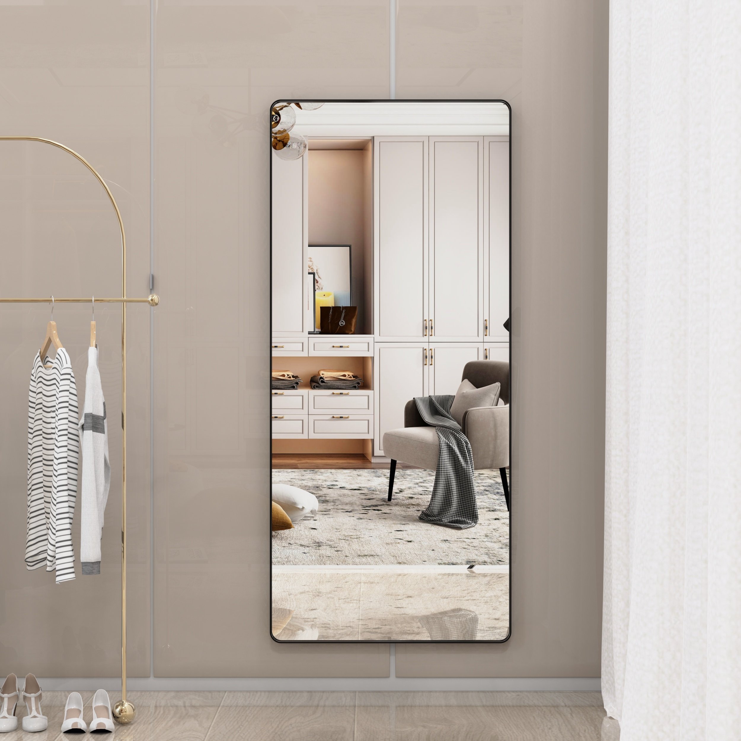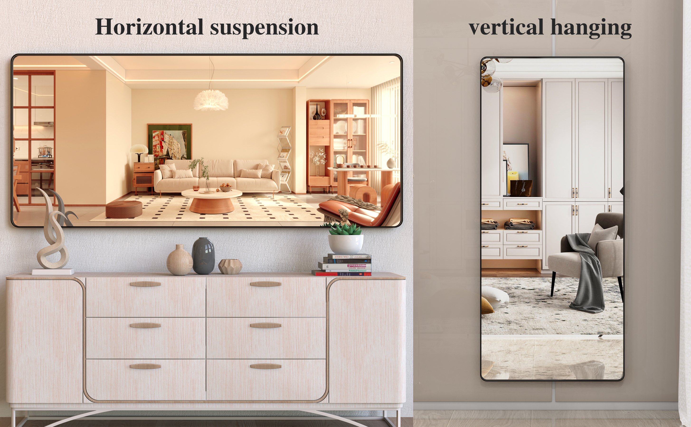 Multiple Application Scenarios : It can be hung vertically and horizontally on the wall as bath mirror, or as a floor mirror. Mounting accessories are included in the package. This large shiny mirror can also be the focal point of bathroom, bedroom, living room,dressing room, makeup studio!