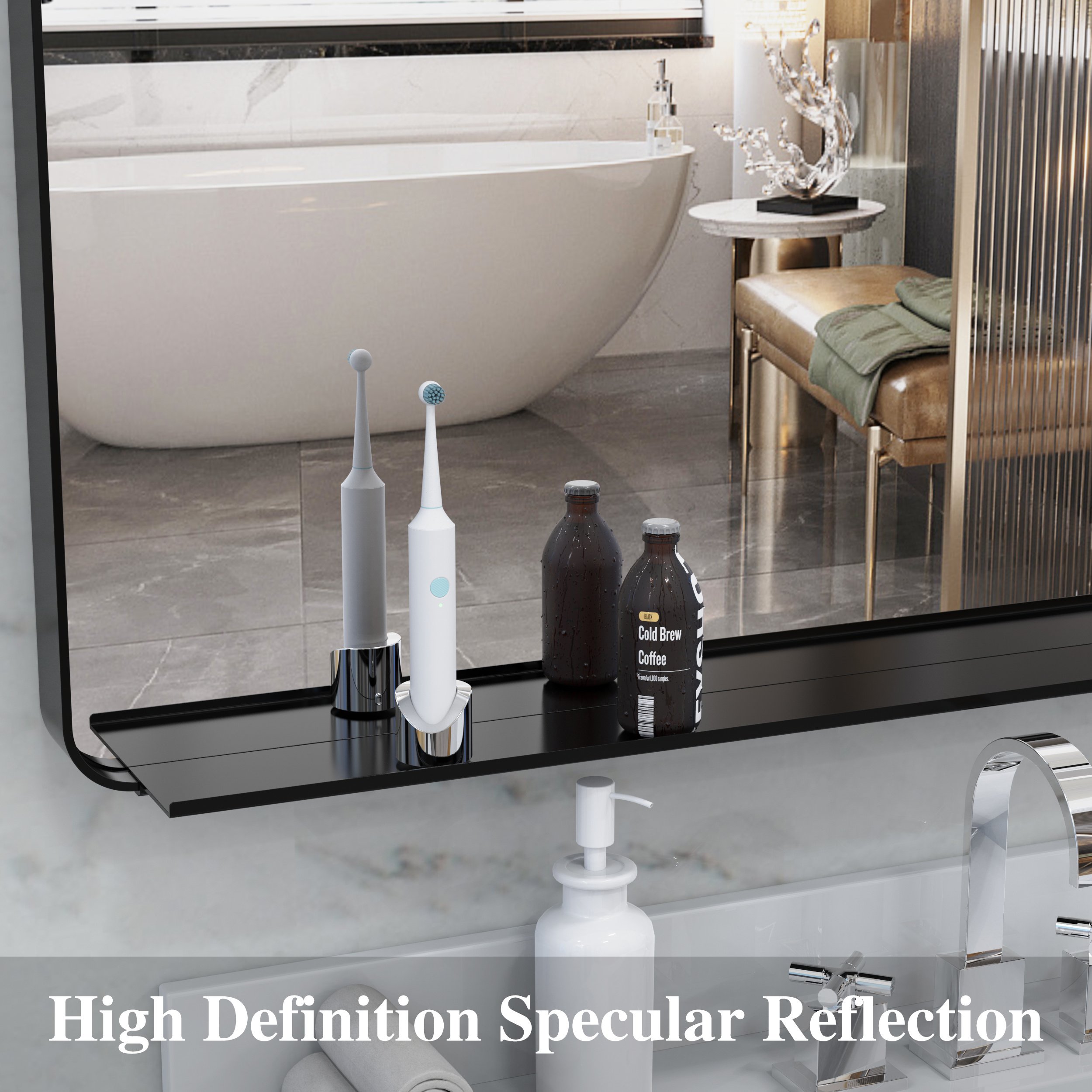 Removable Tray: The mirror adopts a unique tray mounting design. The tray is removable and easy to install, it can be installed in different positions of the mirror to meet your different needs. Aluminum alloy material has better support.