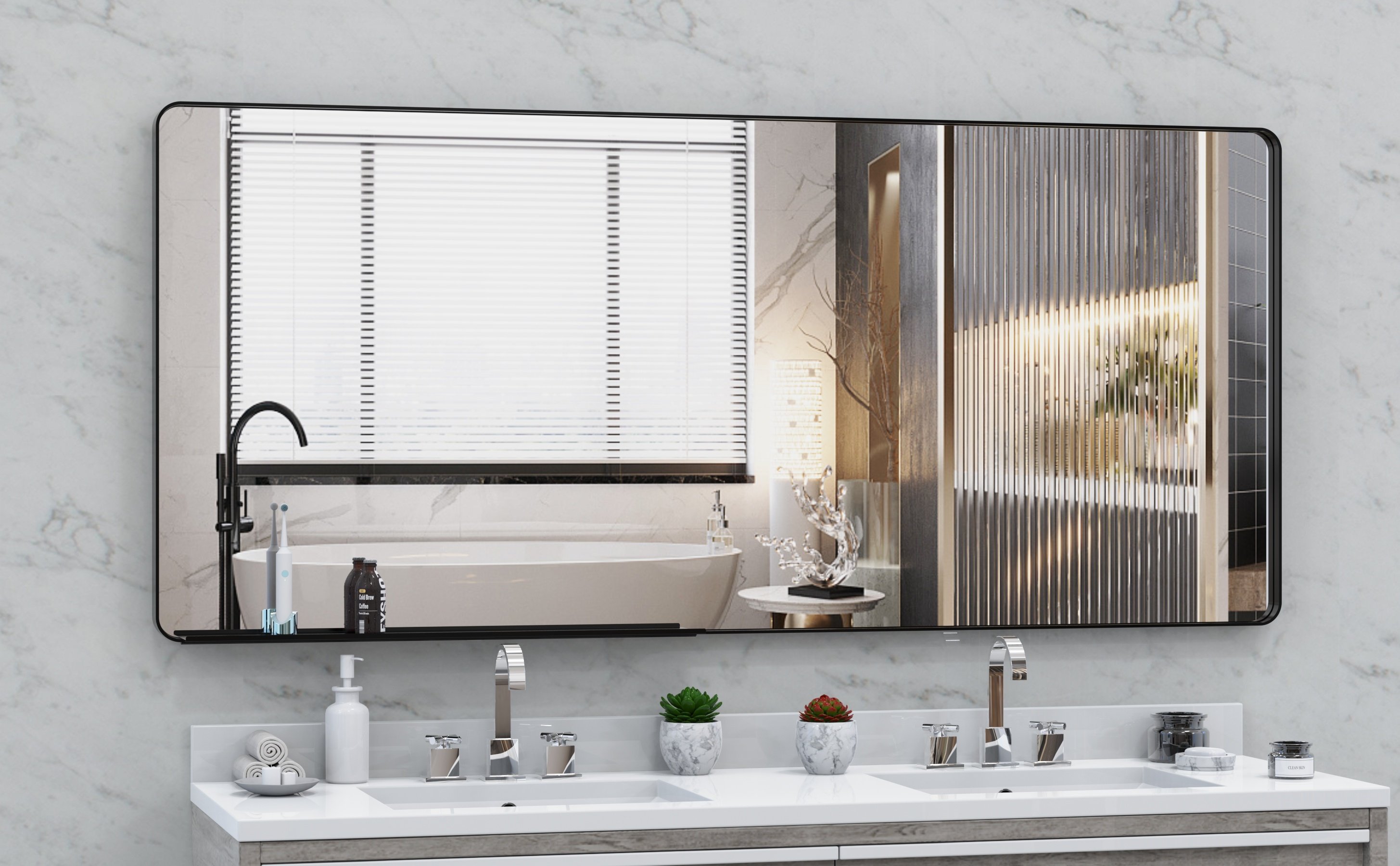 Home > Oversized Bathroom Mirror with Removable Tray Wall Mount Mirror,Vertical Horizontal Hanging Aluminum Framed Wall Mirror Full Length Mirror,Full Body M
