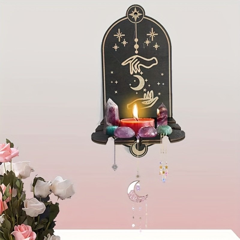 1pc Rustic Wooden Bat Crystal Floating Shelf - Wall Hanging Decorative Shelf Rack for Home, Living Room, Bedroom - Perfect for Halloween, Thanksgiving