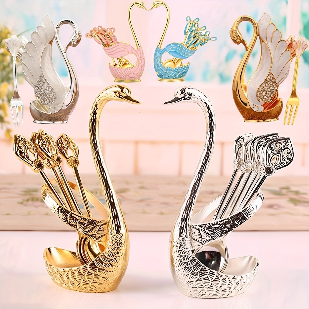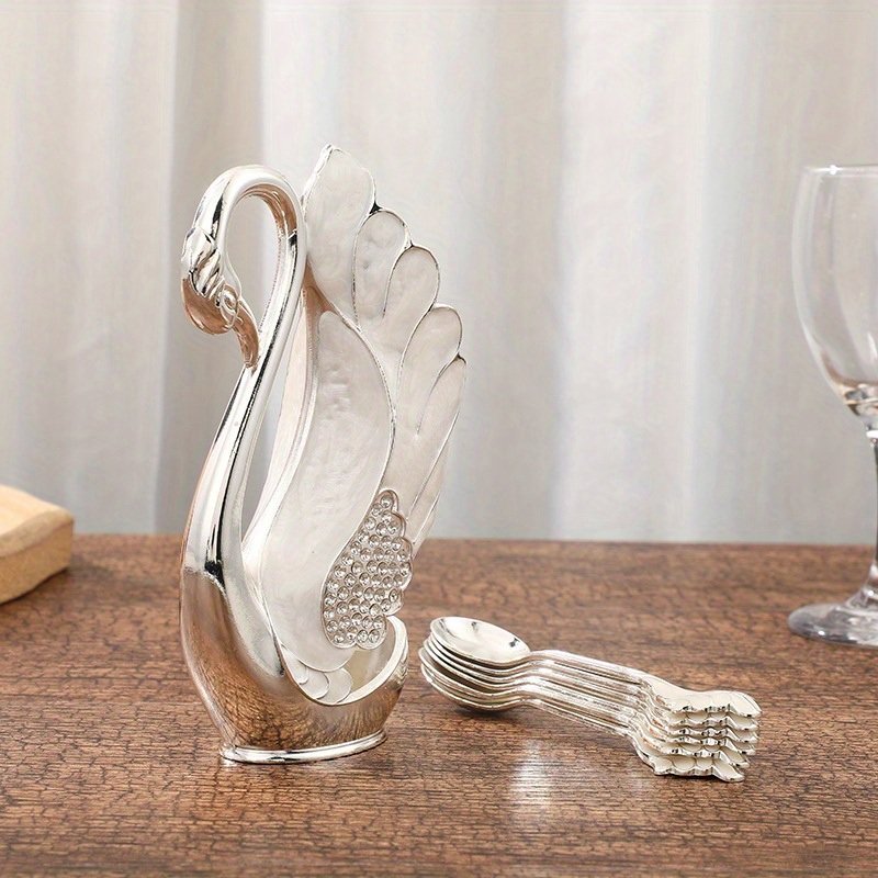 Home > 1pc; Coffee Dessert Spoon Set; Fruit Cake Coffee Tea Spoon; Swan Shaped Base Holder Cutlery Set; Zinc Alloy Metal Tableware