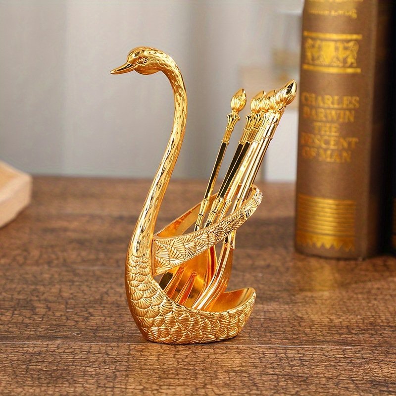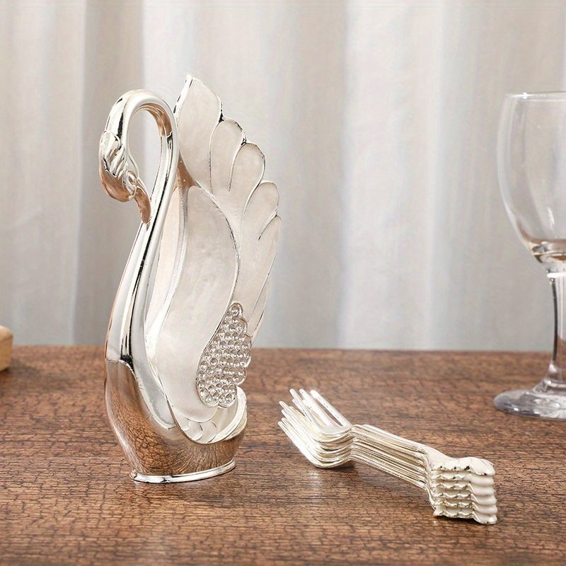 Home > 1pc; Coffee Dessert Spoon Set; Fruit Cake Coffee Tea Spoon; Swan Shaped Base Holder Cutlery Set; Zinc Alloy Metal Tableware