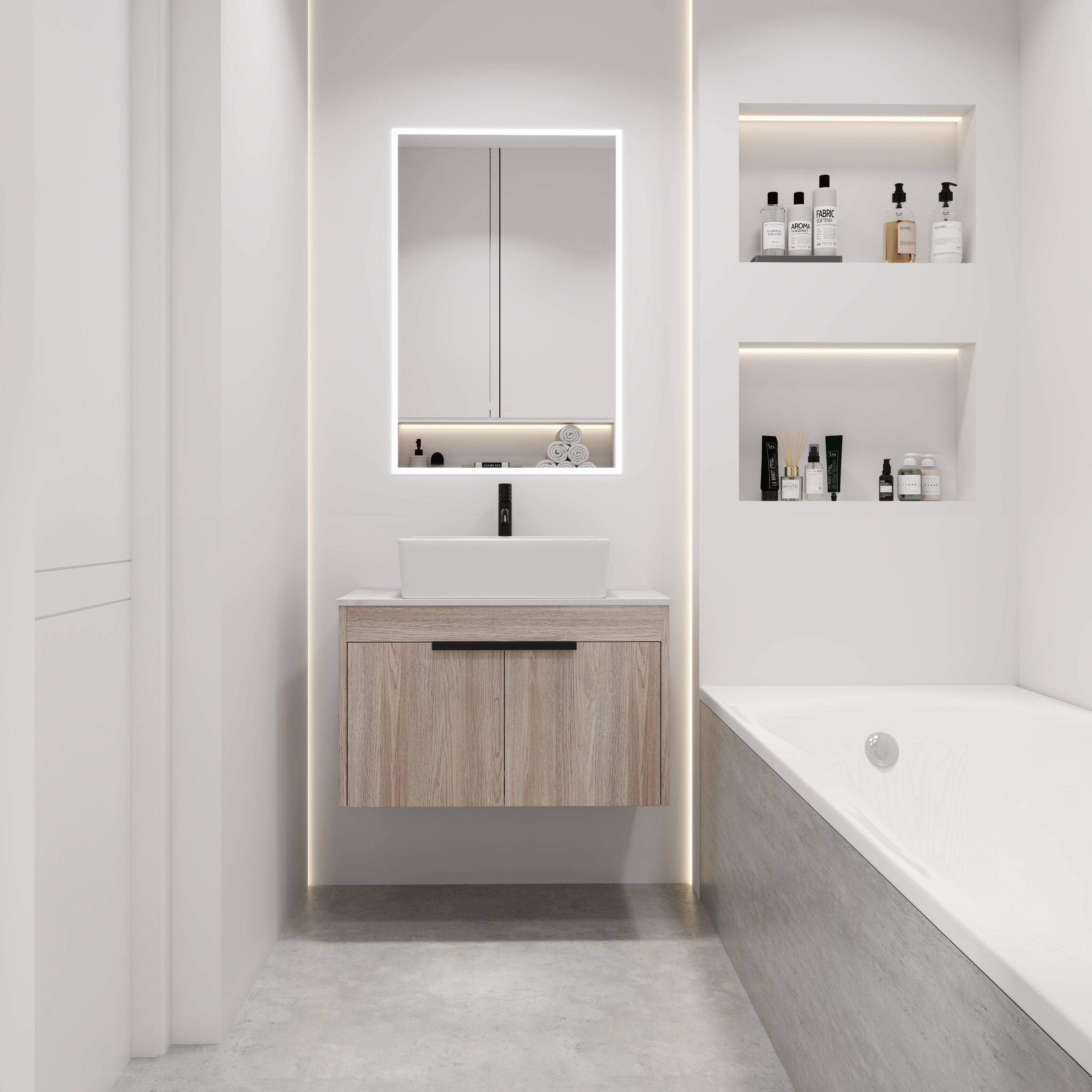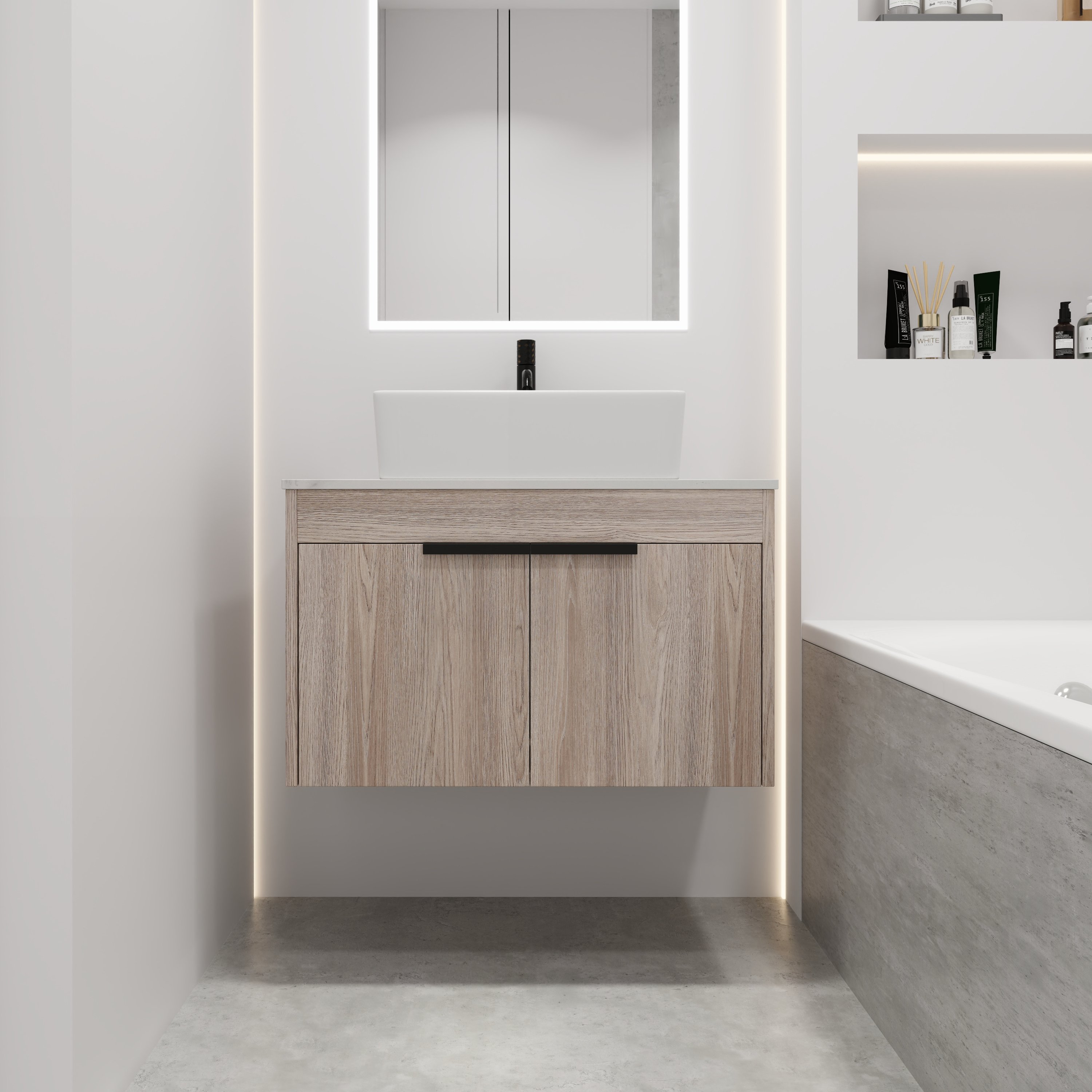 | Product Name | 30 " Modern Design Float Bathroom Vanity With Ceramic Basin Set; Wall Mounted White Oak Vanity With Soft Close Door; KD-Packing; KD-Packing; 2 Pieces Parcel(TOP-BAB110MOWH) |