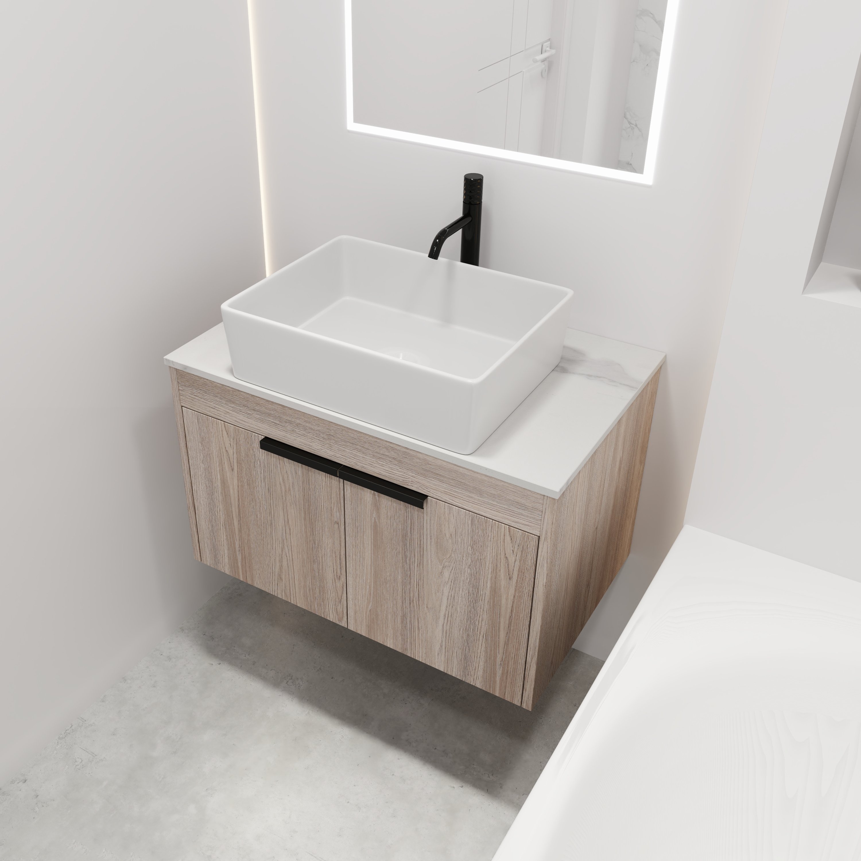 Cabinet color: White Oak (Note: this vessel sink is single hole)