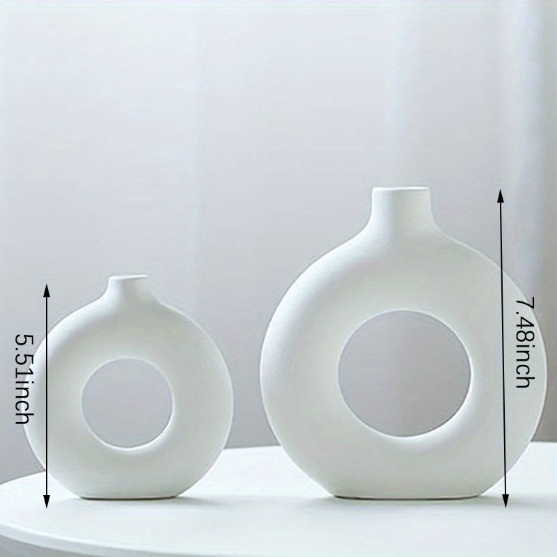 Home > 1pc; White Ceramic Vase White Vases For Decor; Modern Home Decor Vase; Boho Vases For Decor; Circle Vase; Round Vase; Donut Vase; Decorative Vase