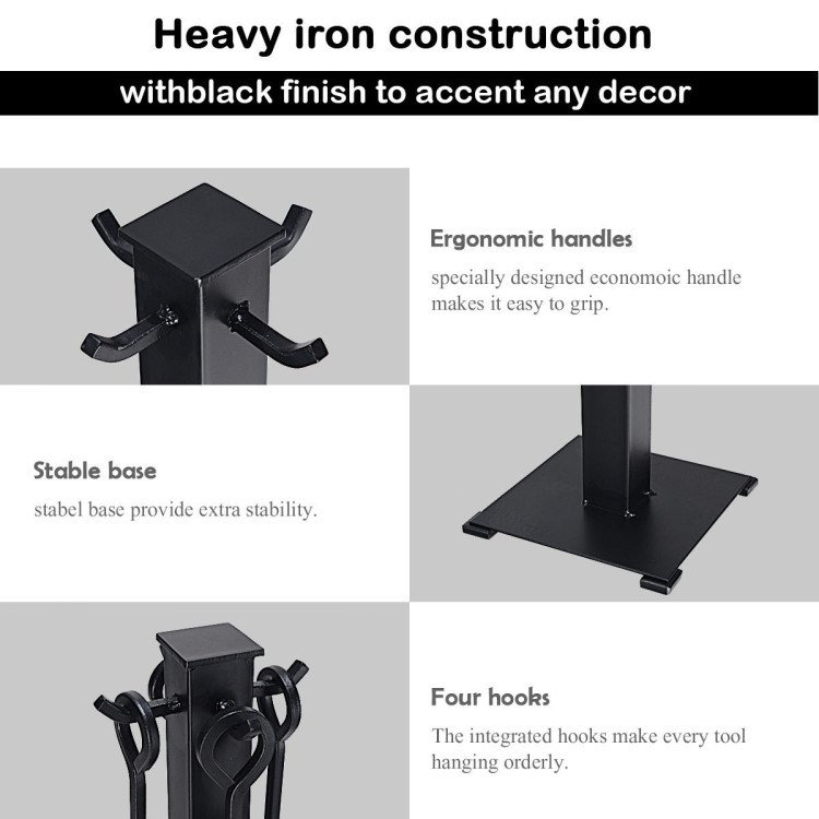 The fireplace decoration toolset includes tong, poker, base, shovel and brush.