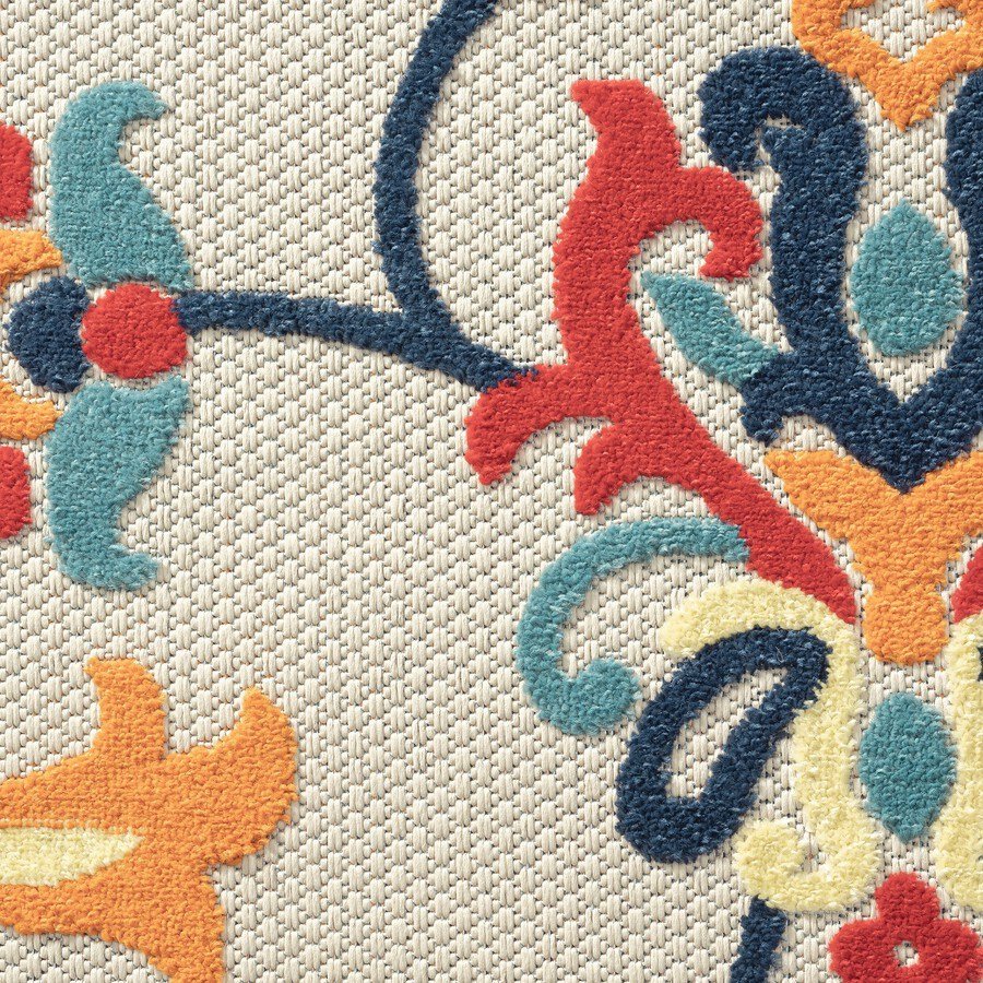 This indoor-outdoor rug features an intricate loom with a multitude of colorful fibers. It is the ideal choice for the low-maintenance home looking for a high-traffic rug for their porch, courtyard, camper, or poolside oasis.