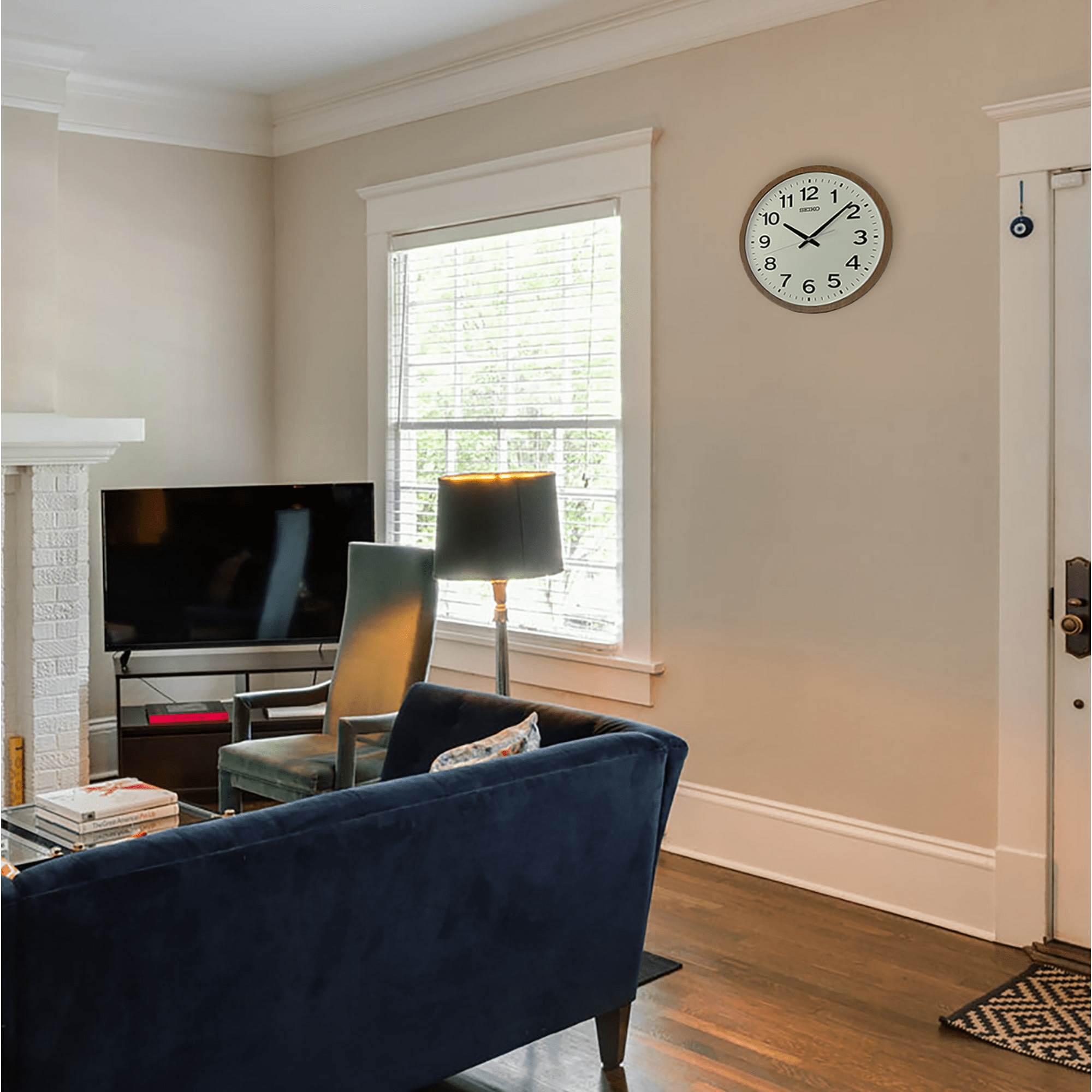 The quiet sweep second hand continuously glides around the clock, eliminating annoying ticking sounds. Perfect for any space requiring absolute quiet.