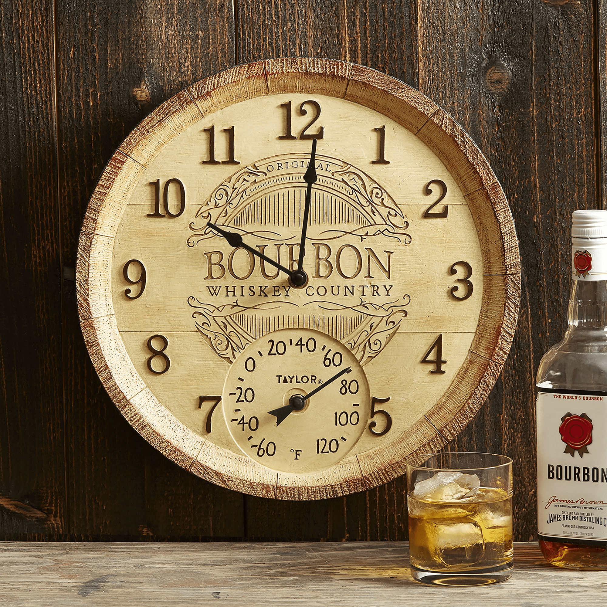Home > Taylor 14-inch Bourbon Barrel Clock with Thermometer