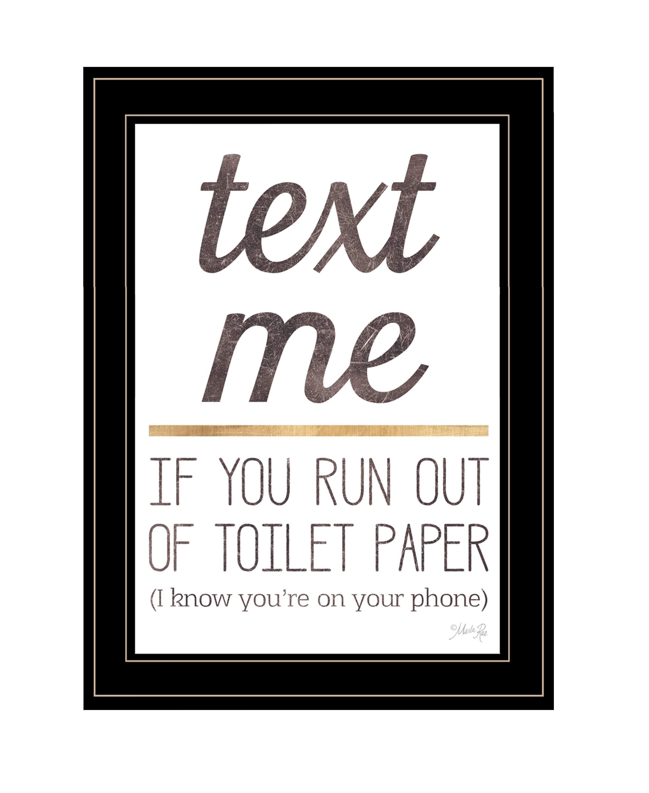 "Text Me if You Run Out of Toilet Paper" by Marla Rae, Ready to Hang Framed Print, Black Frame "Text Me if You Run Out of Toilet Paper" by Marla Rae, Ready to Hang Framed Print, Black Frame "Text Me if You Run Out of Toilet Paper" by Marla Rae, Ready to Hang Framed Print, Black Frame